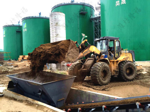 1、发酵工段—槽式发酵2、粉状有机肥生产设备—上料机(使用装载机上料)3、发酵料粉碎(双粉碎机,一用一备)4、成品筛?。ú僮髌教ǎ?、全自动包装秤(粉状肥专用+带搅拌)6、